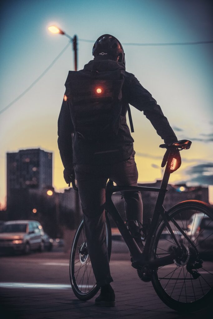 Tipp für mehr Sichtbarkeit: Blinkende Rücklichter sind – überall außer am Fahrrad selbst – an Helmen, Trikots oder Taschen erlaubt. Am Fahrrad selbst sind Rücklichter mit Bremslicht-Funktion eine gute Möglichkeit die Sichtbarkeit zu erhöhen.
