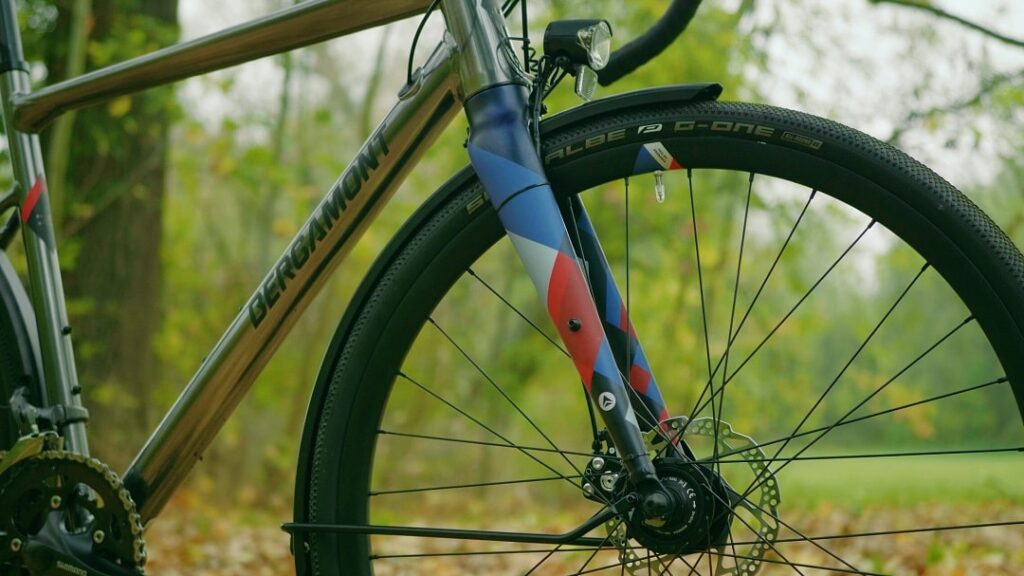 Was trotzdem sofort ins Auge fällt, immerhin handelt es sich ja um ein Gravelbike, ist die Ausstattung des Bikes. Gepäckträger, Schutzbleche sowie Lichtanlage deuten bereits an, für wen das Bike gedacht ist. Bergamont schreibt selbst, dass das Bike für „zukünftige Commuter, Tourer und Explorer“ konzipiert wurde, aber dazu später mehr.
