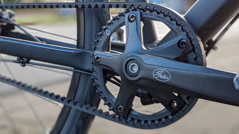 Der Antrieb bietet aber auch über die leise Geräuschentwicklung hinaus einige Vorteile. Ein Riemenantrieb ist deutlich langlebiger und wartungsärmer als der klassische Kettenantrieb. Der Zahnriemen aus Carbon muss nicht geölt werden, behält auch nach längerer Nutzung seine Form und leiert nicht aus. Perfekt für alle, die lieber fahren möchten, anstatt sich mit der Wartung ihres Bikes zu beschäftigen.
