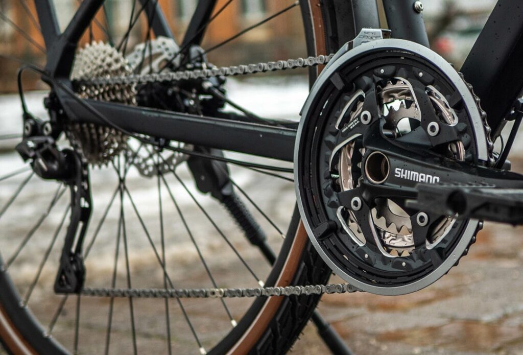 Ein weiteres Highlight am Cube Kathmandu ist das Shimano Schaltwerk aus der XT-Reihe mit 11 – 34 Zähnen. In Kombination mit den anderen Shimano-Komponenten (Umwerfer und Schalthebel) aus der Deore-Reihe weist die Schaltung zwar kein Champions-League- aber doch mindestens Bundesliga-Niveau auf. Das ist nicht High-End, für die meisten Fahrerinnen und Fahrer absolut ausreichend und in der Preisklasse unter 1.000 Euro richtig gut. Die Bandbreite der Schaltung mit seinen 30 Gängen ist so groß, dass man hier in jeder Situation den richtigen Gang zu Verfügung haben sollte. Das am Kathmandu verbaute Hollowtech II Tretlager unterstützt die Steifigkeit des Rahmens perfekt.