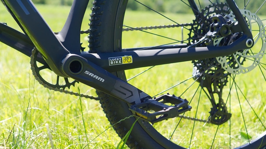Die Federung macht ein Mountainbike erst so richtig zu einem Mountainbike. Die Federgabel ist in diesem Fall von SR Suntour und stammt somit von einem Spezialisten. Der Federweg von 100 mm ist XC-typisch. Die Gabel lässt sich per Luftdruck auf Gewicht und Vorlieben einstellen und auch die Zugstufe lässt sich anpassen. Schönes Feature ist der Remote-Lockout, mit dem du auch während der Fahrt bequem die Gabel fixieren kannst. Im Stand macht die Gabel bei gezogener Bremse einen recht steifen Eindruck, was auch an dem breiteren Achsstandard „Boost“ liegt. Der ist übrigens auch im Heck des Bikes zu finden und sollte dem Twentyniner trotz der großen Räder eine gute Steifigkeit geben. Durchaus praktisch für Anstiege im Wiegetritt und schnelle Abfahrten.